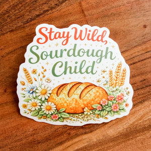“Stay Wild, Sourdough Child" Waterproof Vinyl Sticker – the perfect blend of fun and functionality for all sourdough enthusiasts! This charming sticker features a playful design that celebrates the joy of baking and the rise of artisanal bread-making.